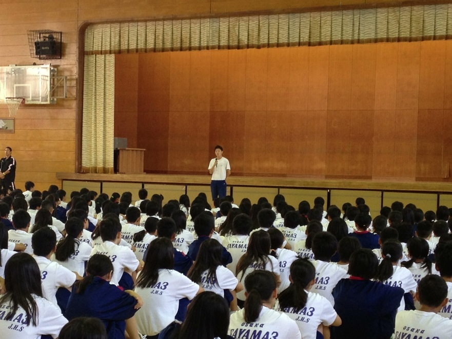 その後、柳校長から、好きな言葉と体育大会に関する話があり、数名の生徒に「好きな言葉は?」聞くと、「ありがとう」や「感謝」といった言葉が返ってきていました。