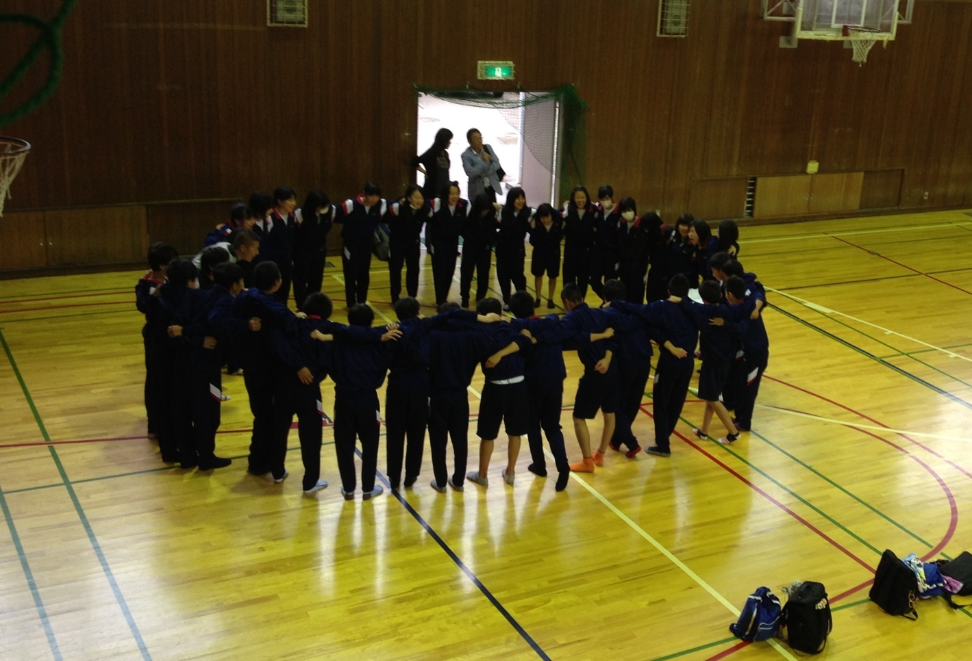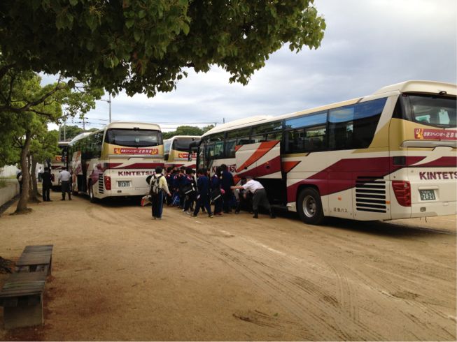 各クラス円陣をくみ、バスに乗り込み、