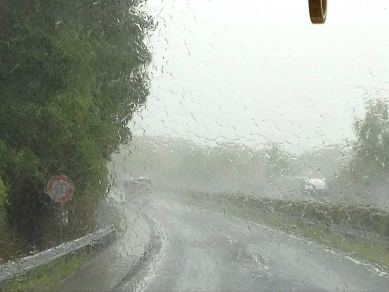 しかし天候は…前のバスが見えないほどの豪雨です!!
