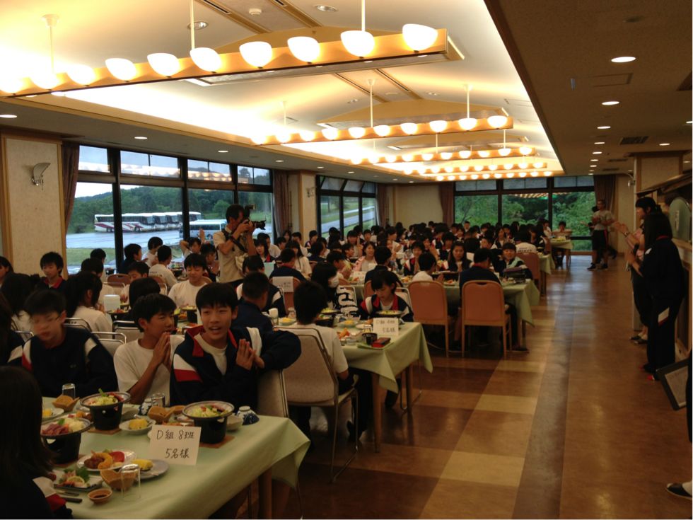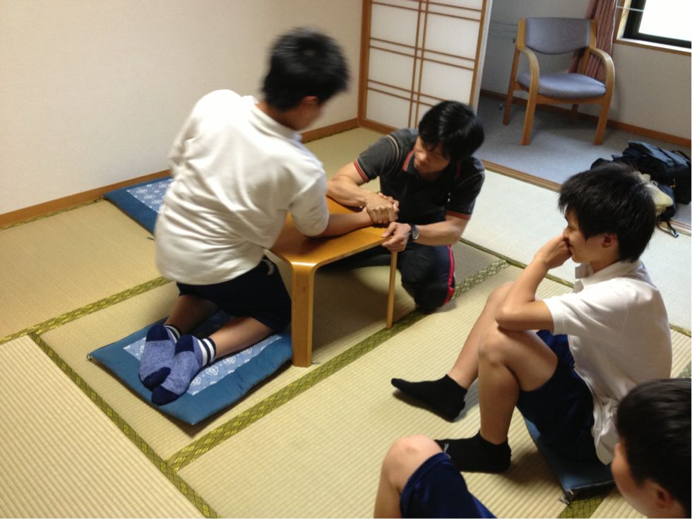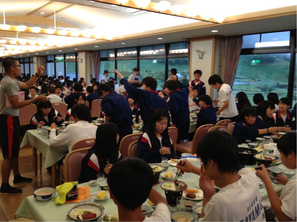 宿舎の外観もわからないまま入館し、クラスごとに入浴、夕食準備と慌しく時間が過ぎていきます。並行して室長会議が行われています。