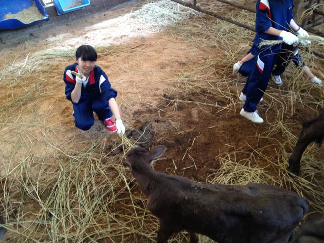 牛飼い体験では、母牛のお世話をさせてもらうと同時に命の大切さを学びました。