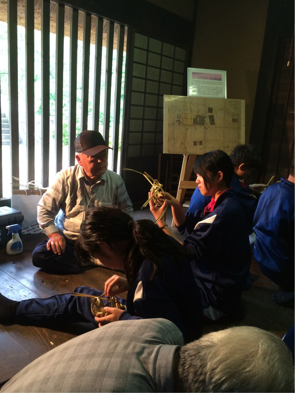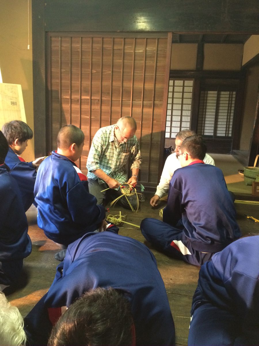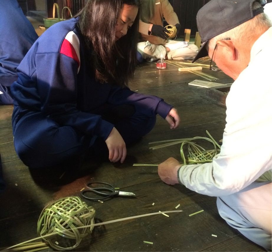 一方の竹細工体験は、旧家の囲炉裏を囲んで、竹ひごを編むというなんとも粋な体験!!