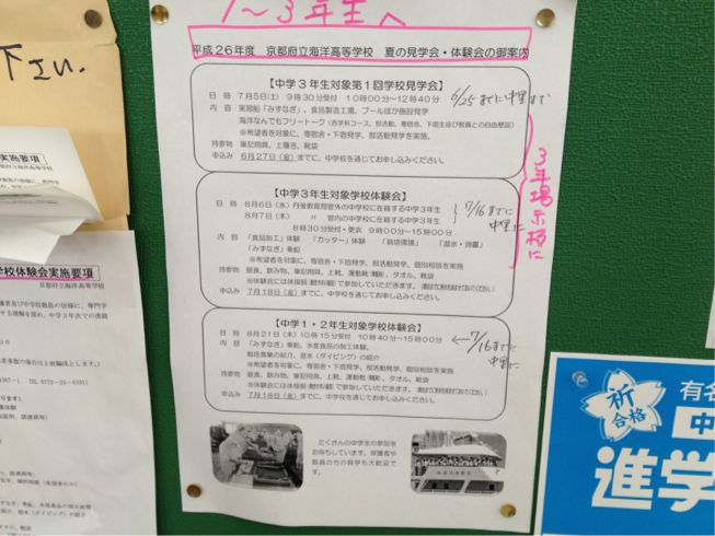 また、月曜日の朝礼で話のあった進路説明会の掲示物も載せておきます。ご覧ください。