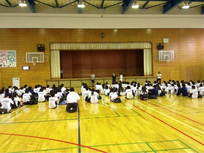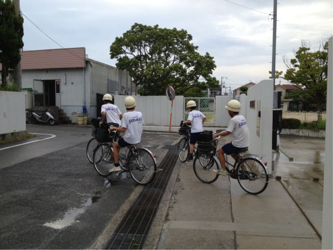 本日、放課後に自転車通学生が体育館に集合し、交通ルールの再確認や注意喚起が行われました。