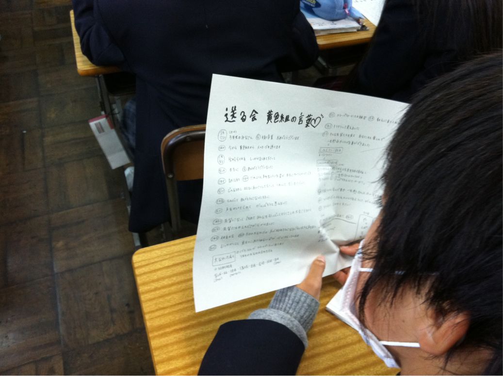 1.2年実行委員全員で、『送る言葉』として考えた内容を披露しました。