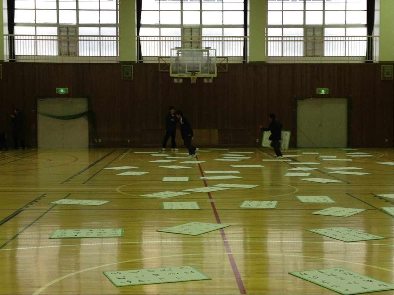 写真は、百人一首本大会の後のエキシビションマッチの様子です。