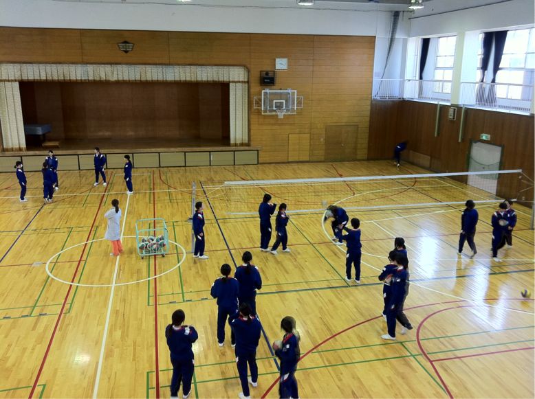 二年生の体育は、男子はサッカー。女子はバレーボールと球技に取り組んでいます。