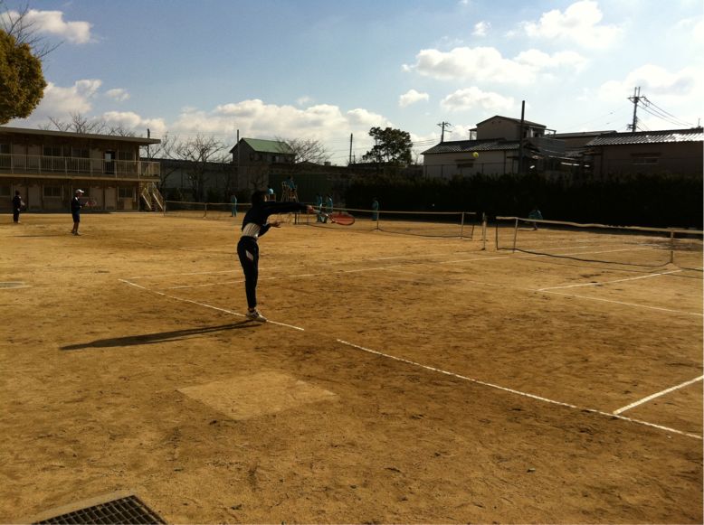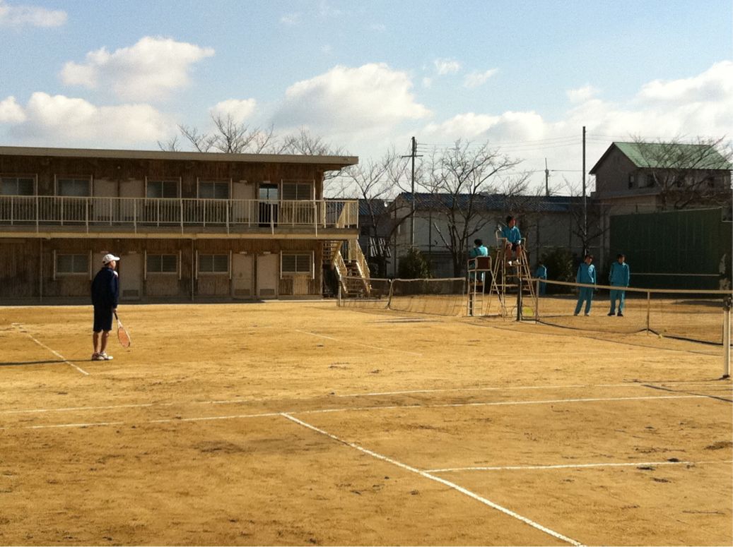 テニスコートでは、硬式テニス部が長野中学校と練習試合をおこなっていました。