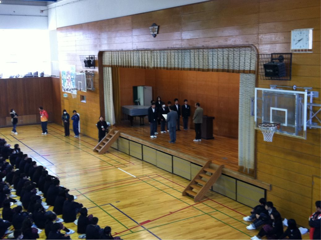 部活動の表彰では、女子バレーボール部の井上さんの優秀選手賞、陸上部駅伝チームの入賞、吹奏楽部の大久保さんの府大会銀賞を讃えました。