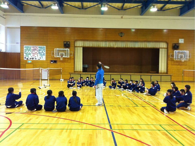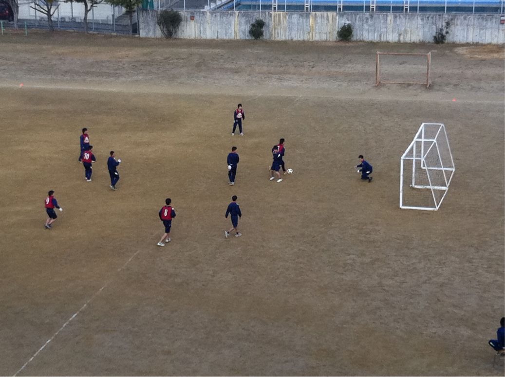 三年生の体育では、女子はバドミントンに、男子はサッカーに取り組んでいます。