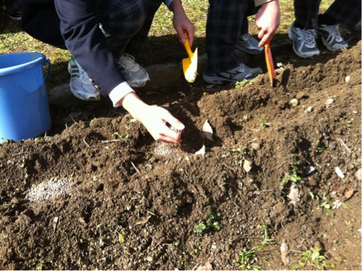 農園では、ジャガイモを植えました。