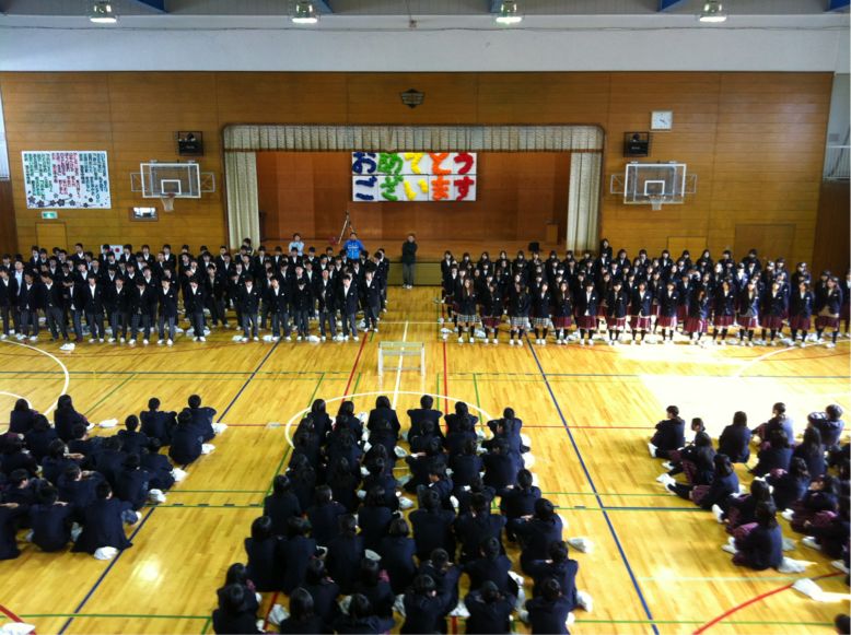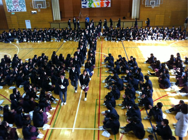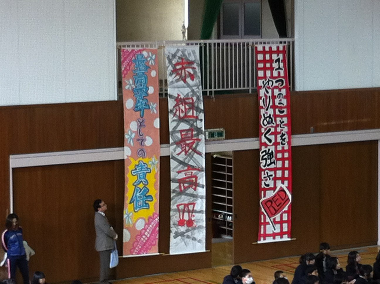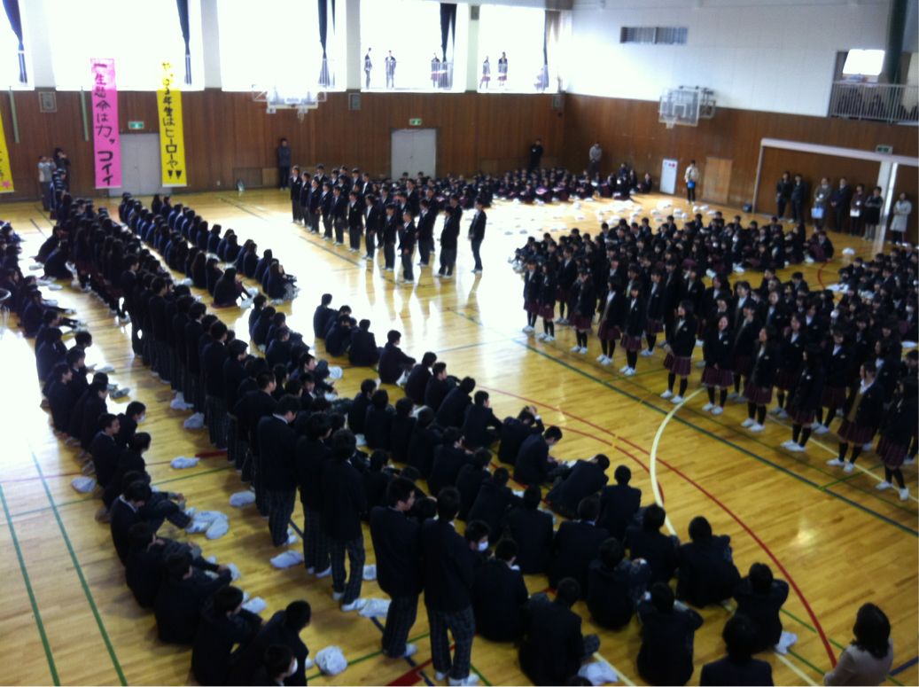 三年生を送った後、1.2年生全員で三年生から引き継いだバトンを確認しあいました。