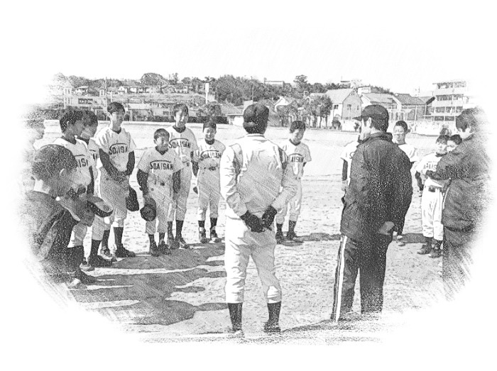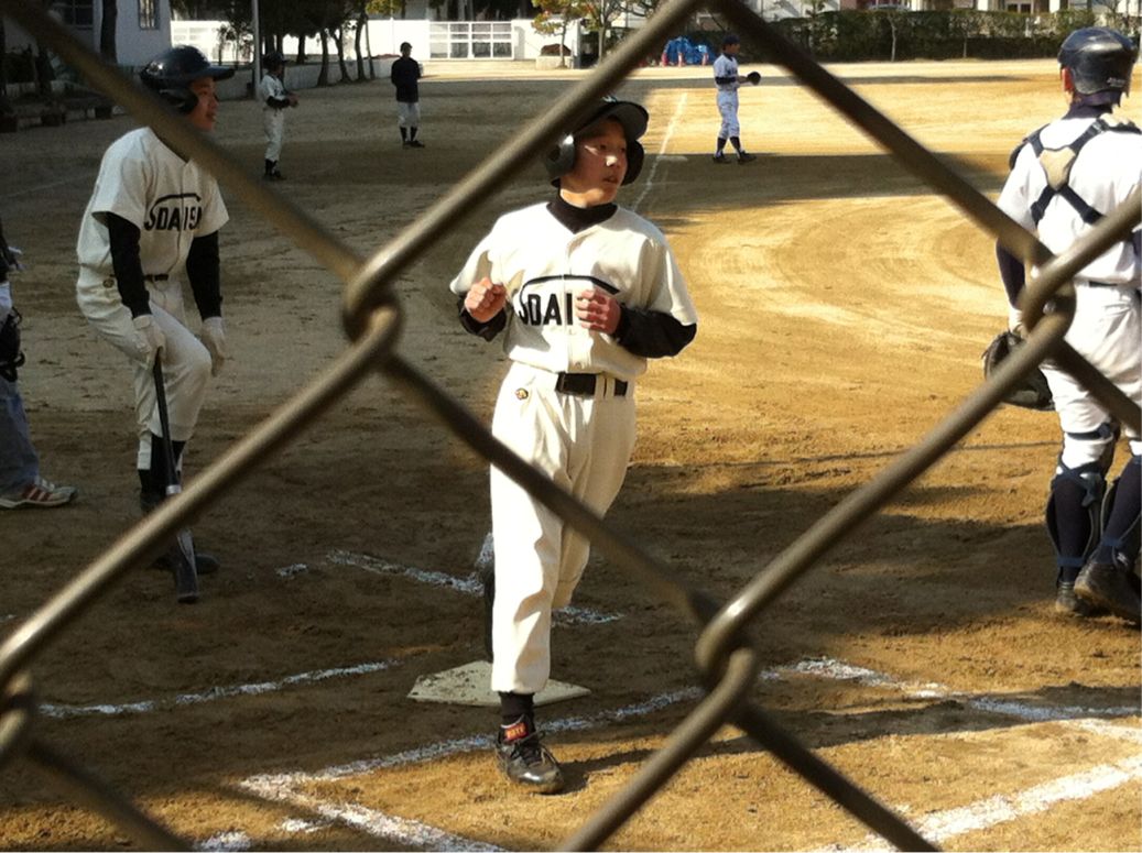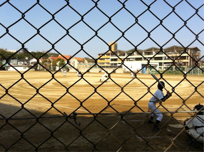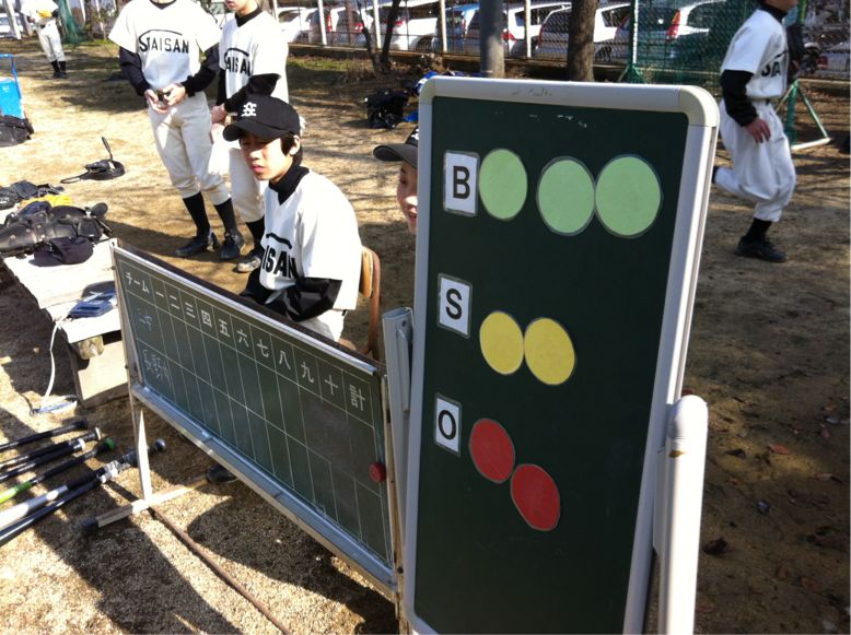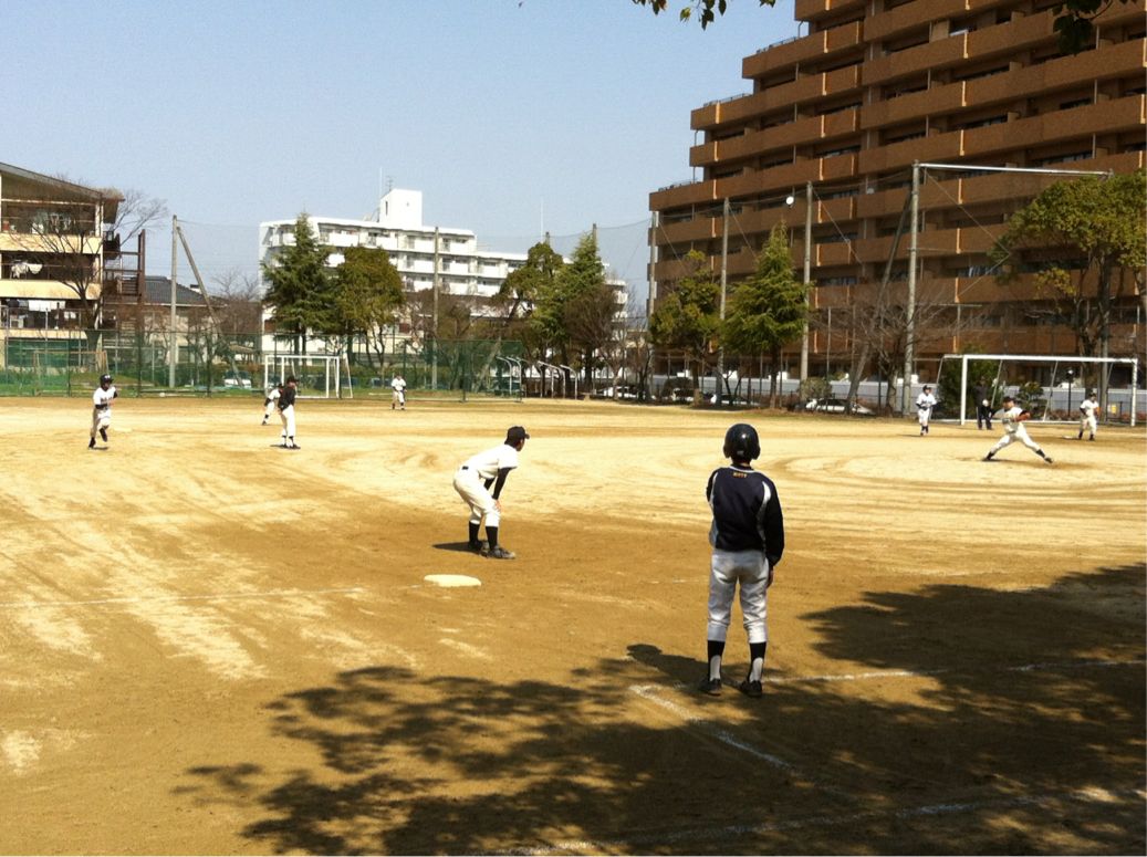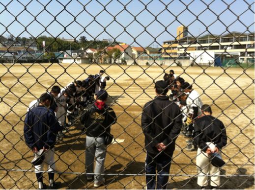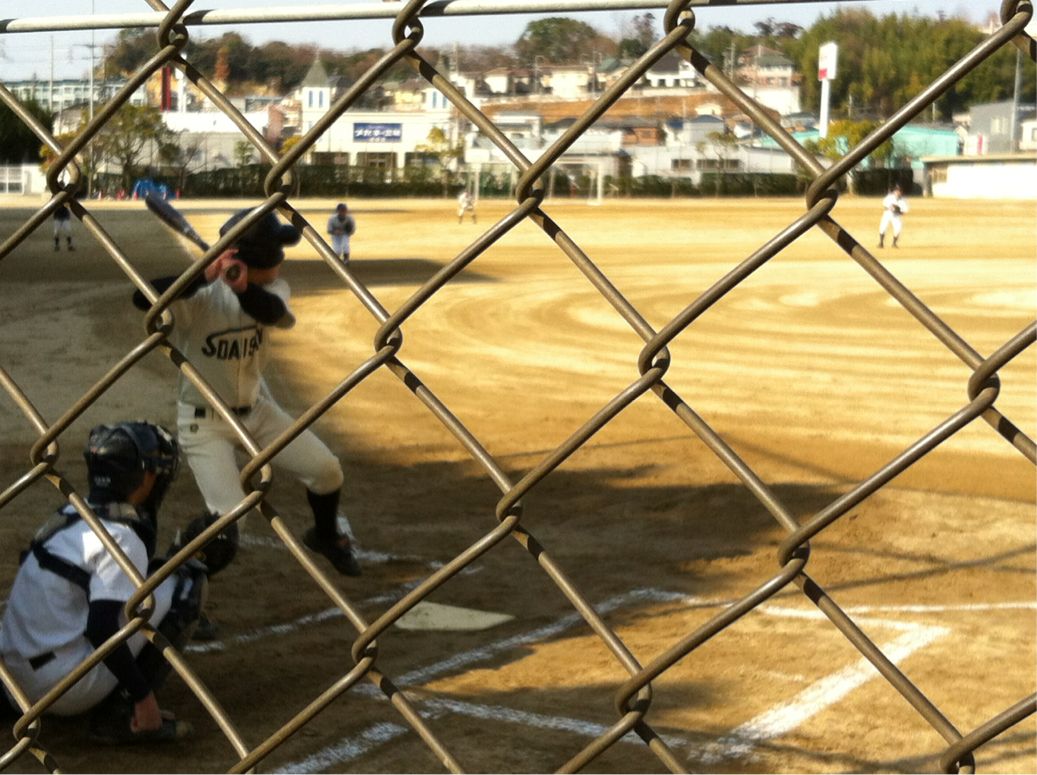 今朝グランドでは、野球部が練習試合を行っています。対戦チームは、長野中学です。