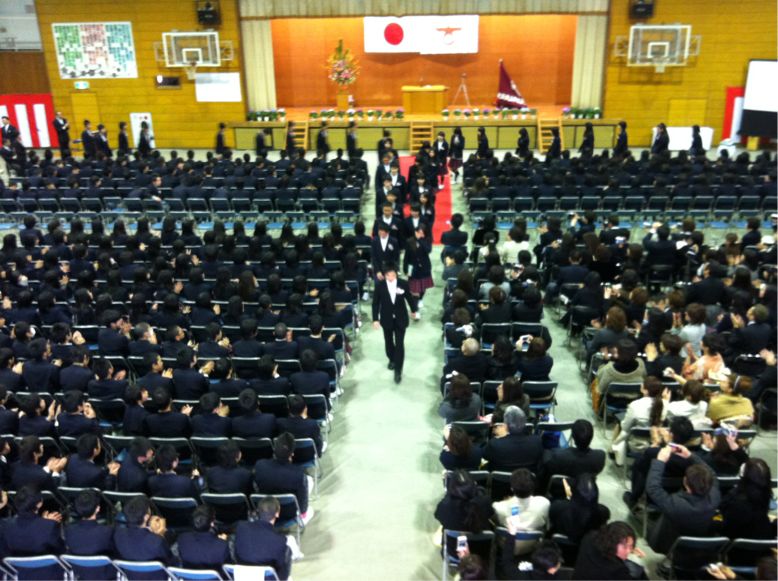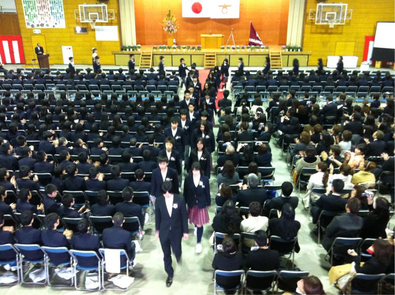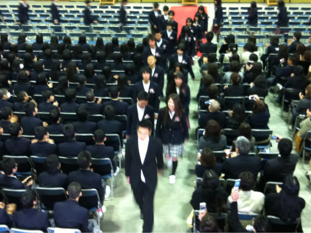 卒業生、退場です。