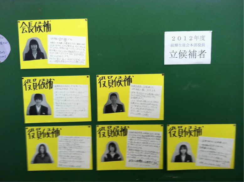 明日の生徒総会で24年度前期生徒会役員を選出します。今回、6人のメンバーが立候補してくれました。