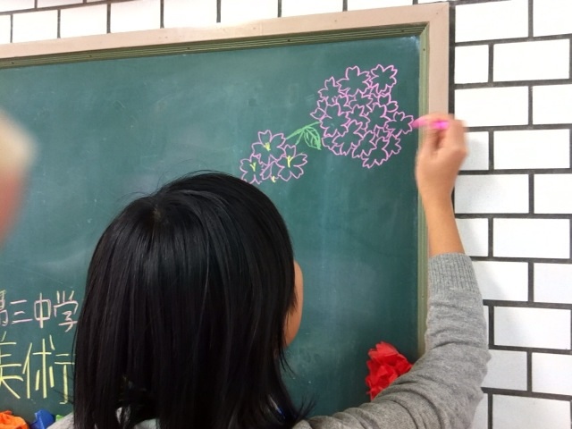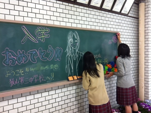 放課後、美術部は、入学式にむけての飾り付けをおこなっていました。