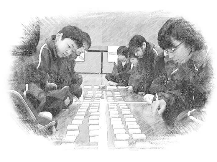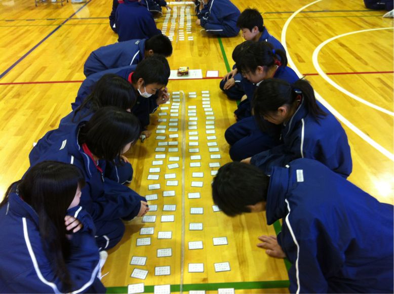 まちにまった百人一首大会です。個人、班、クラスに表彰があります。栄冠は誰に?どの班、どのクラスに輝くでしょう?