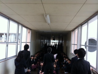 天候が危ぶまれるのでクラス確認をしたあと、新館3Fで待機です。