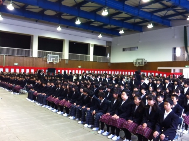 新しく赴任した石丸 孝学校長の式辞です。式辞の中で『あきらめず努力を続ける』『人の気持ちを思いやる』ことの大切さを話しました。