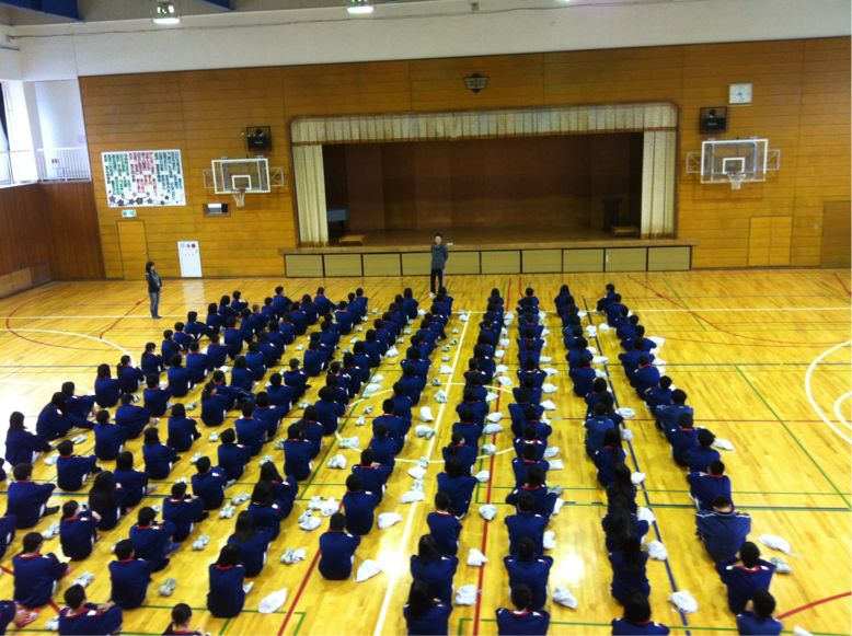二年生、朝の学年集会です。