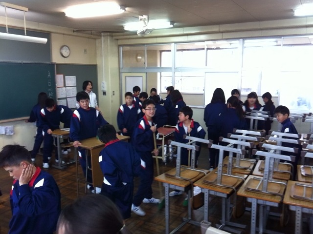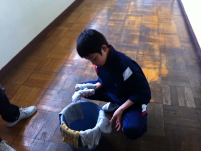 今日は給食のあと、清掃活動です。一年生にとっては初めての掃除となります。