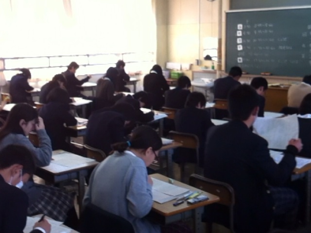 本日、二、三年生は第1回実力テストに取り組んでいます。