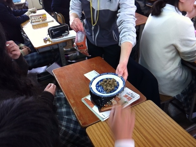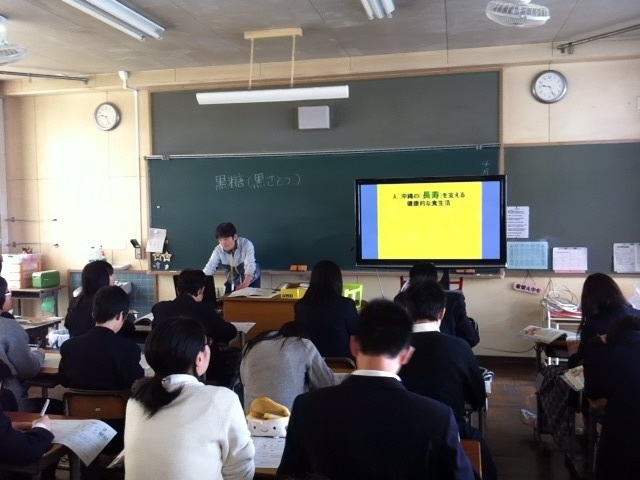 三年生の家庭科では、沖縄修学に関連付けて『沖縄の食』について学習しました。