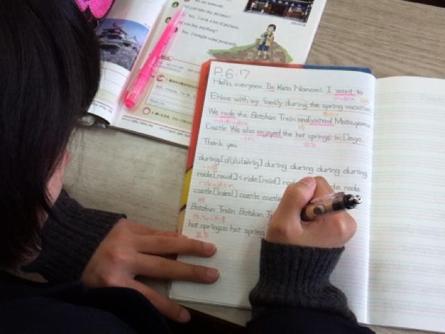 この時間では、教科書の本文を読み、不規則動詞について学習しました。