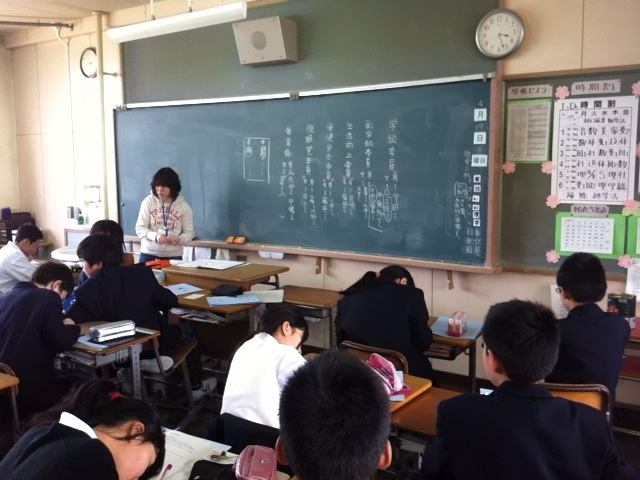 一年生はこの時間、クラスの委員や学習の係などを決めました。立候補あり選挙ありでもりあがった学活となりました。