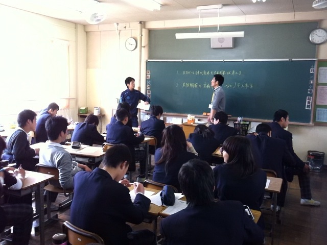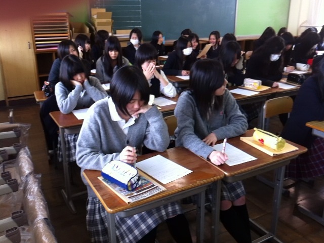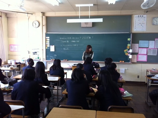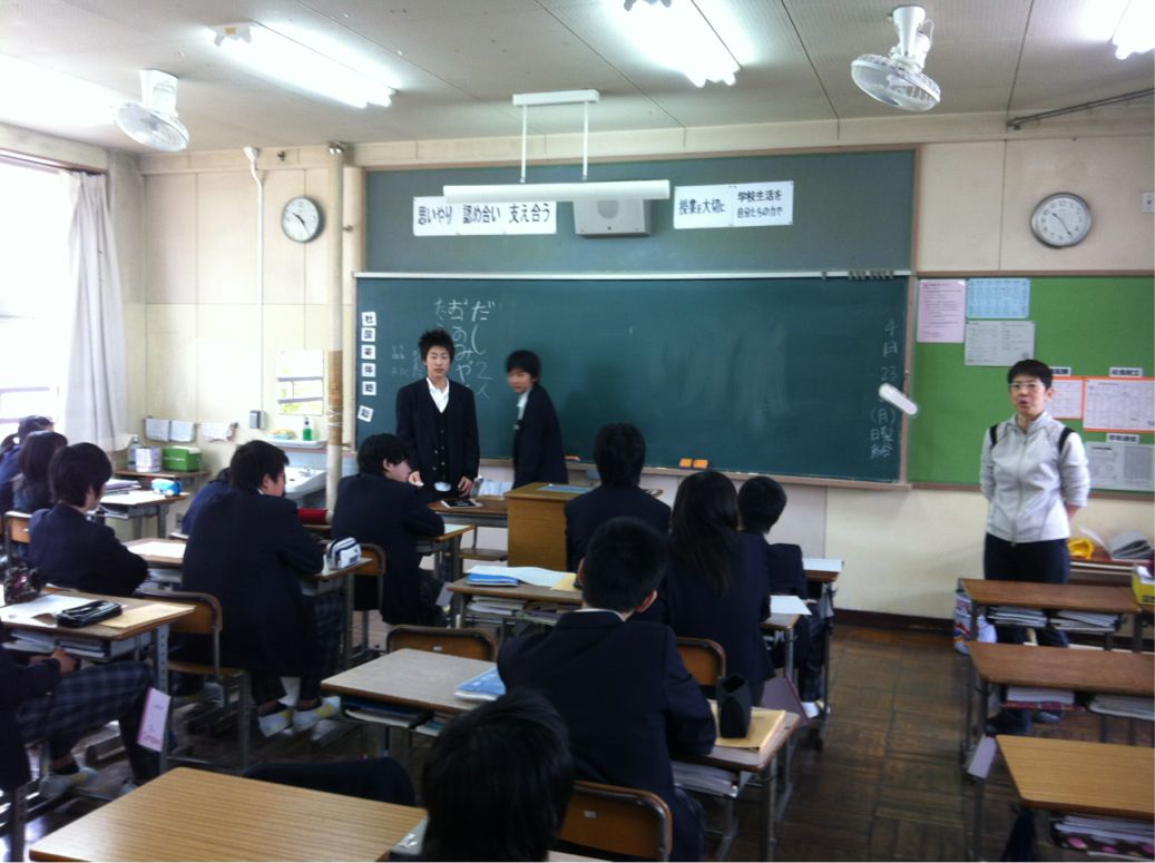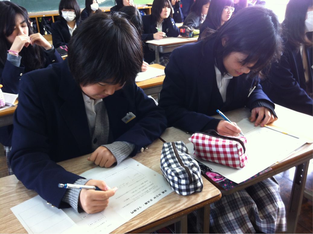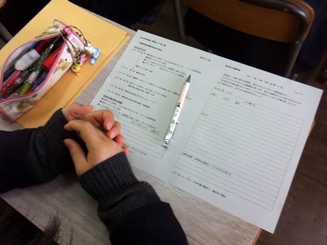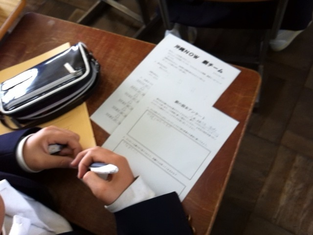 三年生はこの時間、修学旅行での交流会にむけての取り組みです。