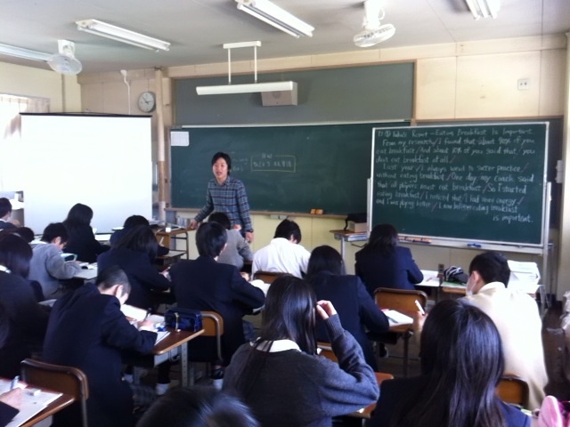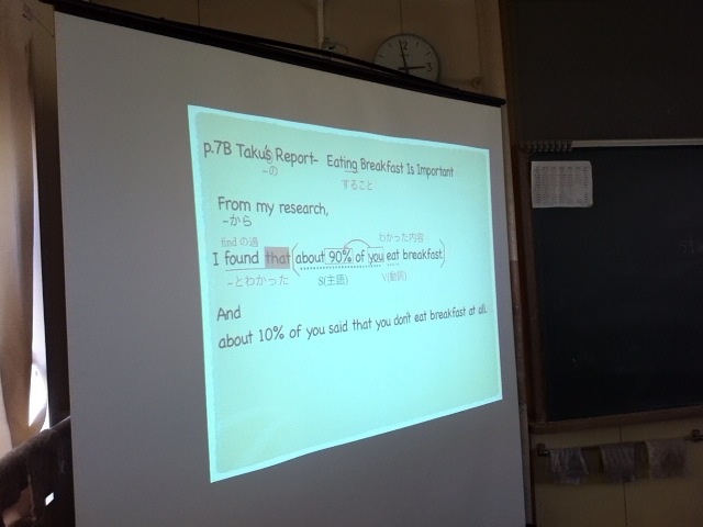 三年生の英語では、プロジェクターを使うなど、よりわかりやすい授業を目指して工夫しています。
