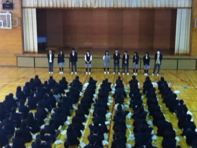 続いて、各クラスの学級委員より修学旅行でのクラス目標を発表しました。