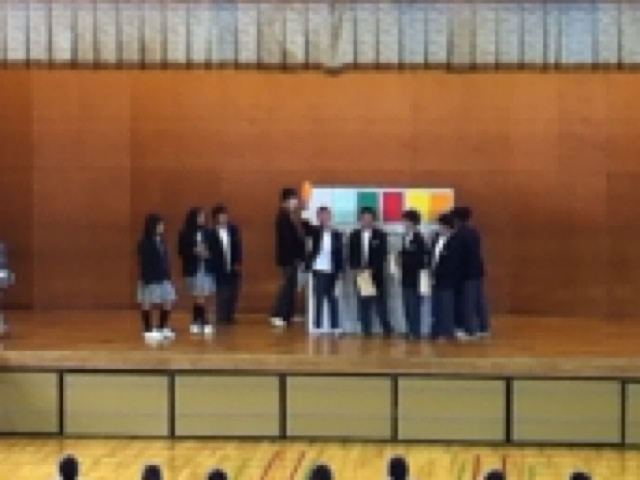 5/7の全校朝礼では、体育大会にむけての縦割りの団編成の抽選会を行いました。