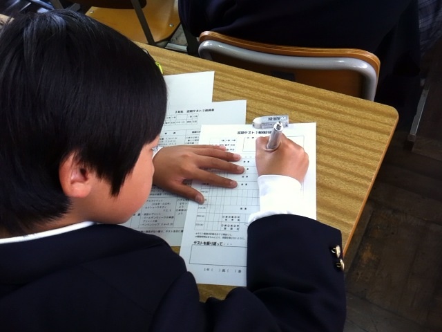 金6限では、22日、23日におこなわれる定期テスト1の受け方や勉強計画について説明をおこないました。
