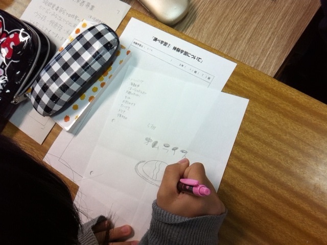 火6限 総合の学習の時間、二年生は宿泊学習一日目の取り組み「ランチ作り」の計画を、班で考えました。