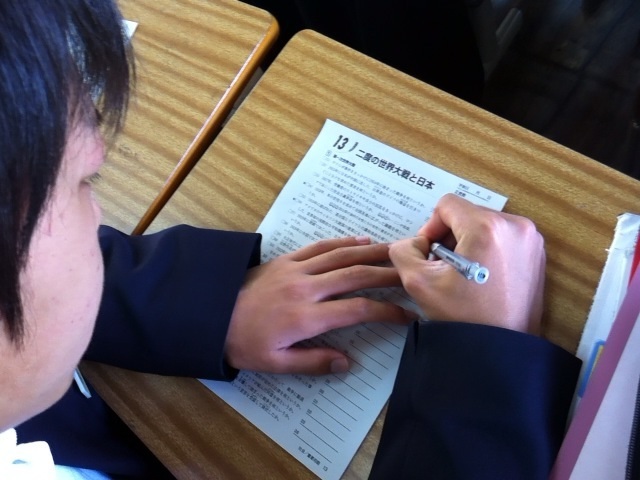 今朝の三年生は、社会科のプリントでモジュール学習に取り組みました。