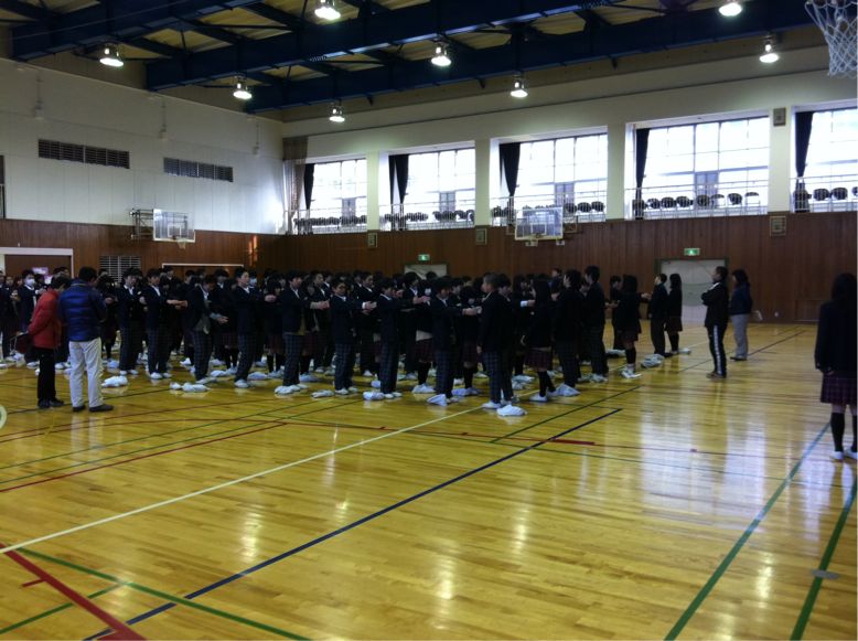 二年生学年集会の集合の様子です。今朝の集会の内容は、視聴覚委員より明日の百人一首大会についての連絡をしました。また、教師(前田)より『実るほど頭を垂れる稲穂かな』を引用し謙虚な姿勢の大切さを話ししました。
