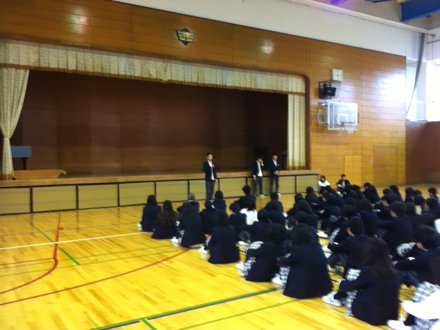 三年生、朝の学年集会です。