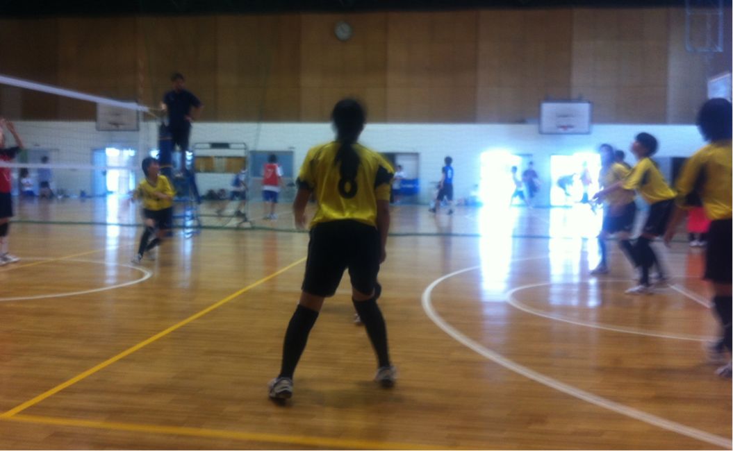 バレーボール部、夏季大会予選トーナメントです。1試合目は河原城中学校とです。
