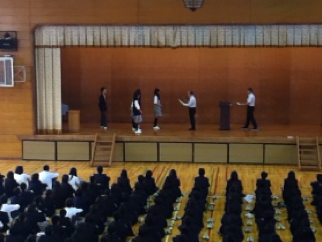 また、部活動の表彰では、陸上部、卓球部の健闘をたたえました。