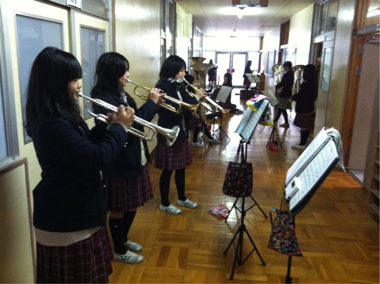 今朝は、陸上部、吹奏楽部、体育館ではバドミントン部が活動していました。