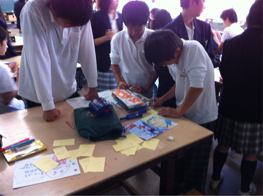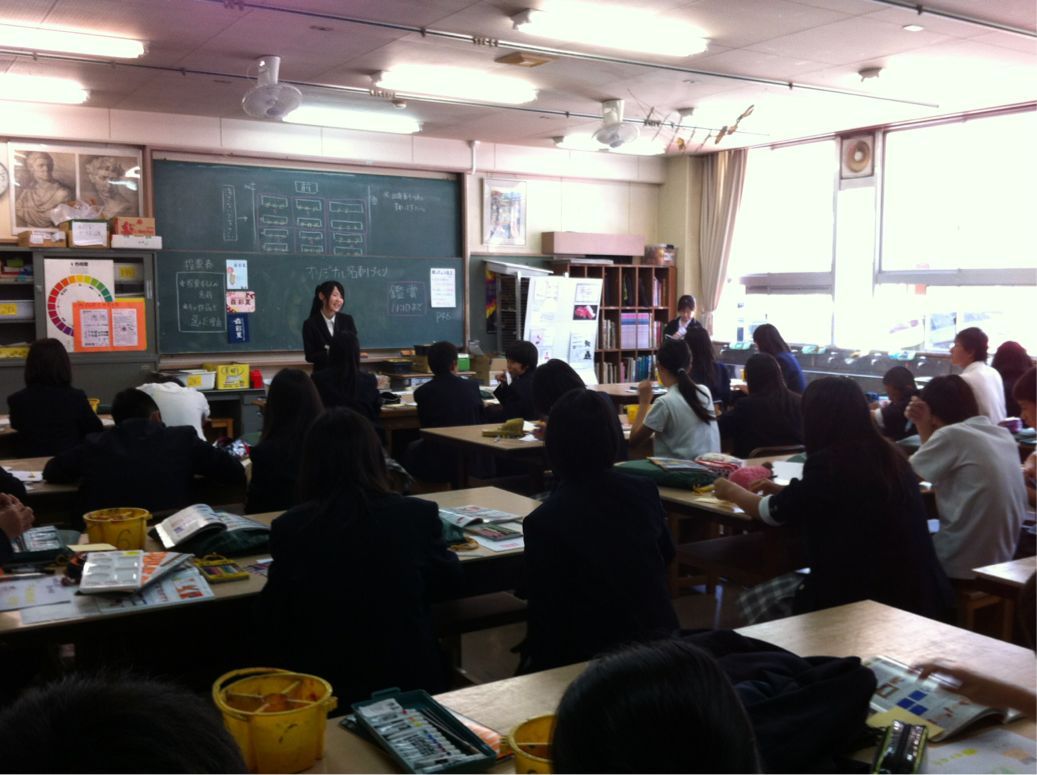 教育実習生が研究授業を行いました。2年生の美術の授業で名刺作りです。