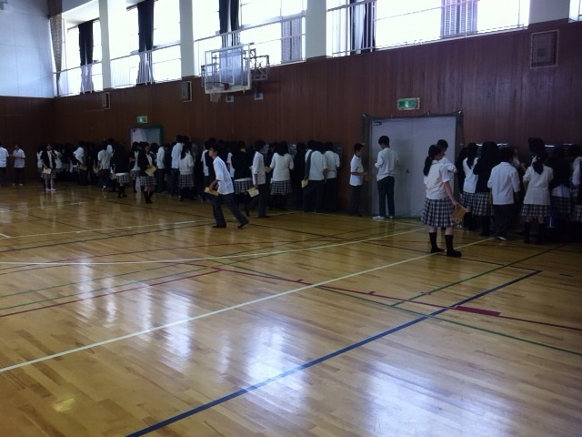 今日と明日の昼休みに二年生の宿泊学習の写真展示をおこないます。