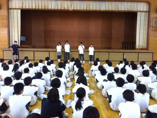 今朝の学年集会では、学級委員会から授業始めのあいさつについて呼びかけをしました。