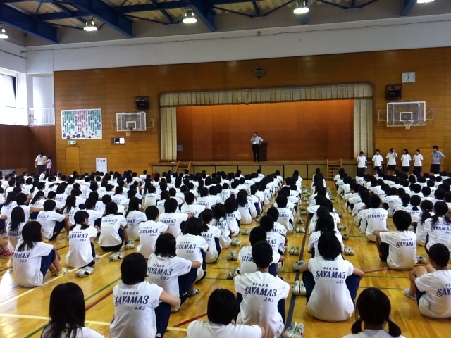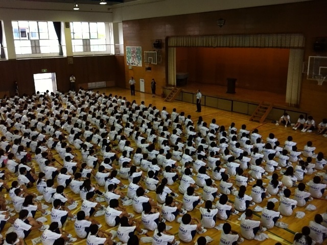この時間は、夏休みを迎えるにあたっての全校集会を行ないました。