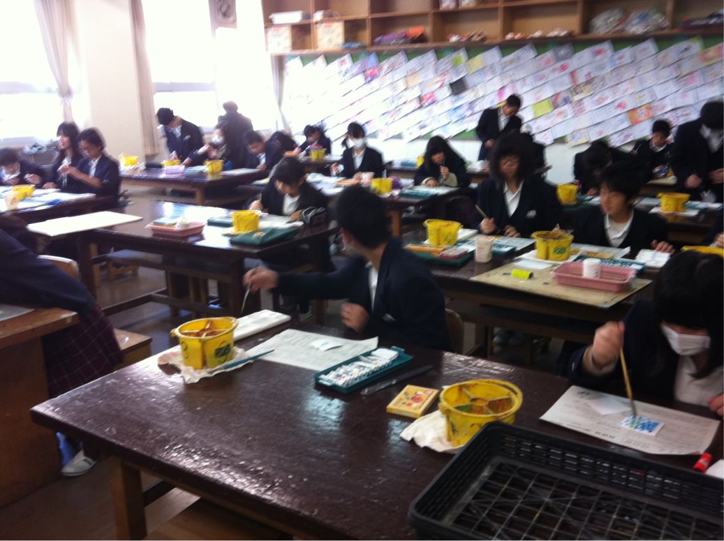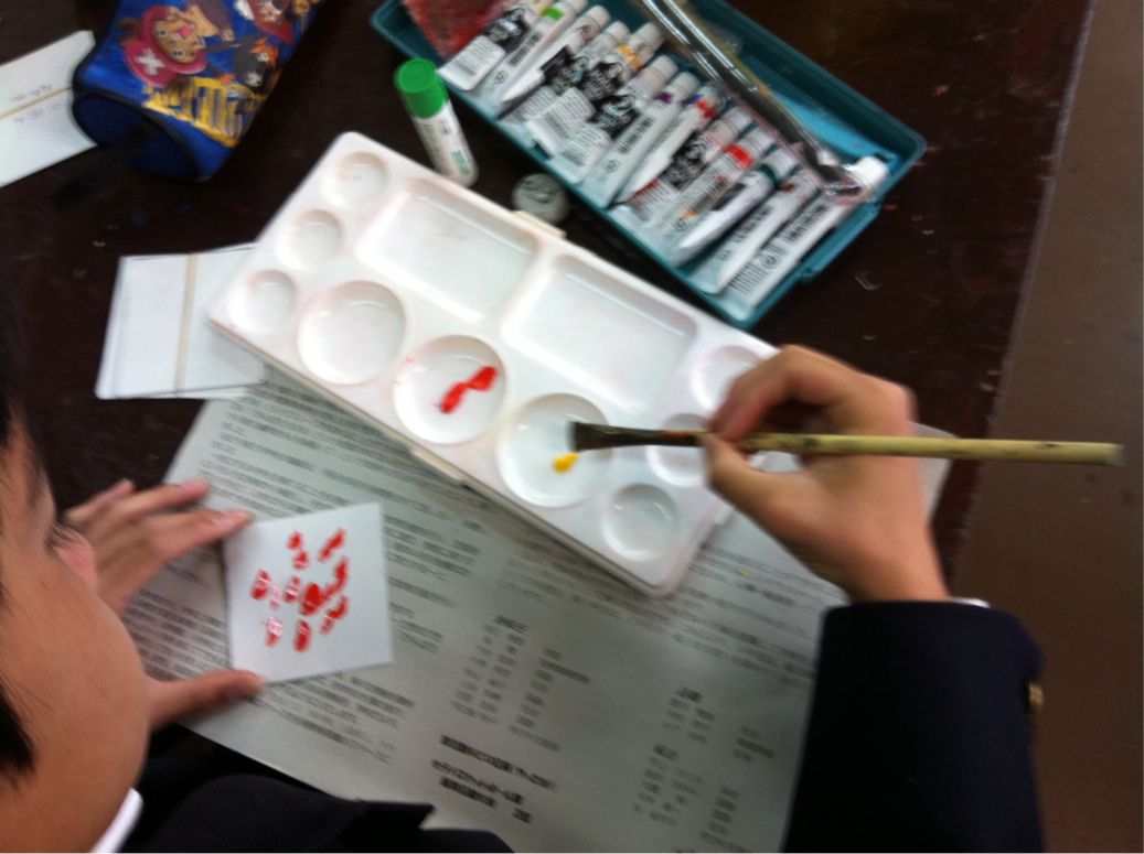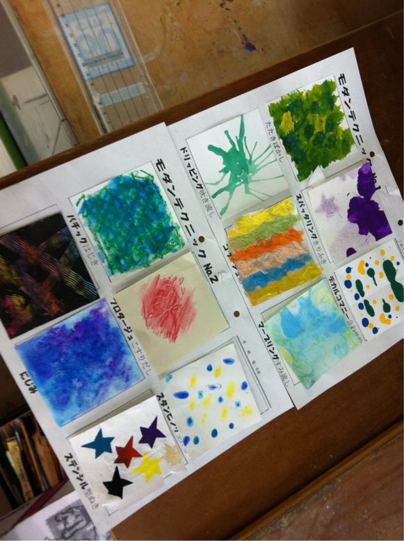 一年生の美術では、モダンテクニックのサンプル表を作成しています。