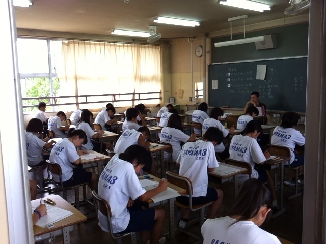 今日は、全学年とも実力テスト残り3教科に取り組みました。