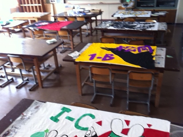 体育大会での学級旗の製作です。