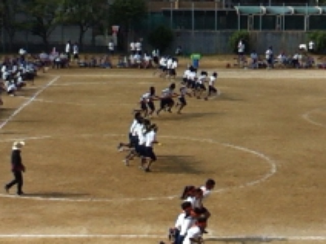 お玉にピン球を乗せて走ります。手元のテクニックが勝負のカギ…