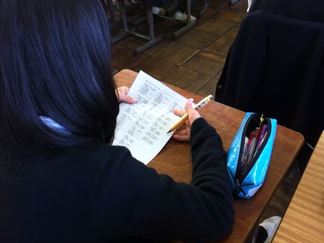 この時間、一二年生は、後期の学級役員を決めました。